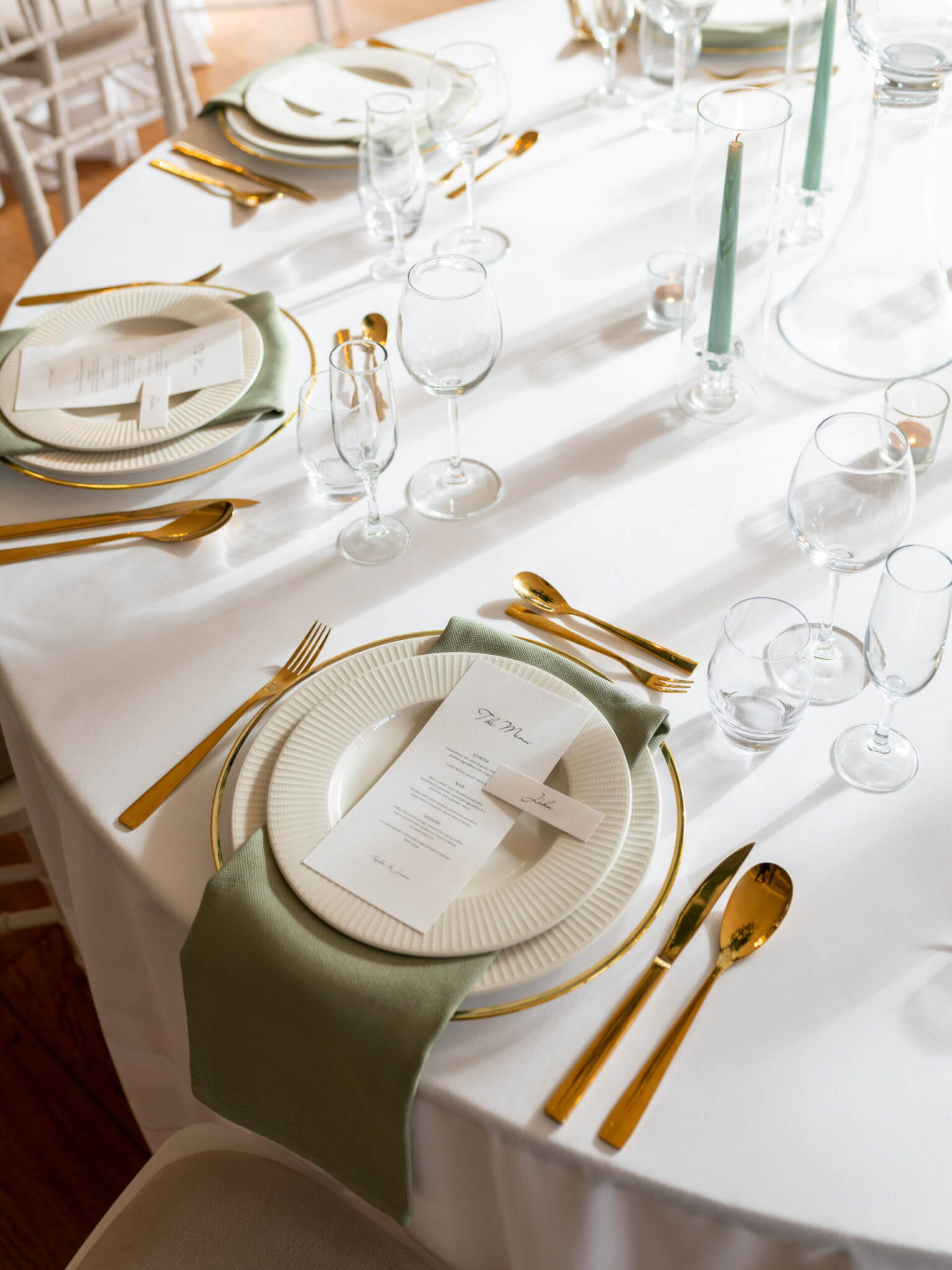 - Crisp white table linen